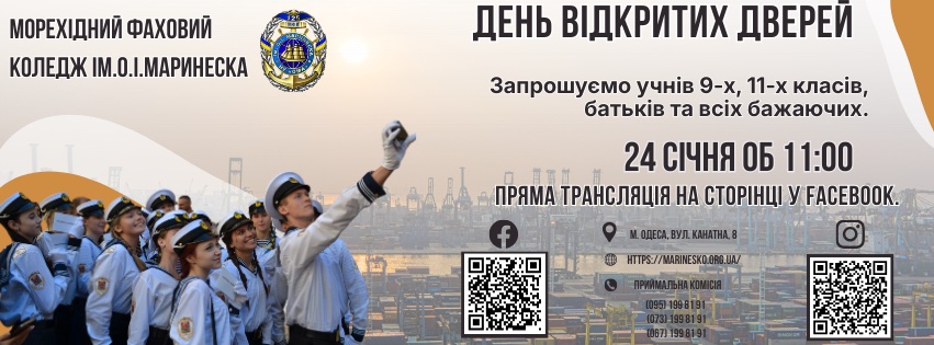 24 січня 2026 року об 11:00 за адресою м. Одеса вул. Канатна, 8 у приміщенні актової зали коледжу відбудеться День відкритих дверей.