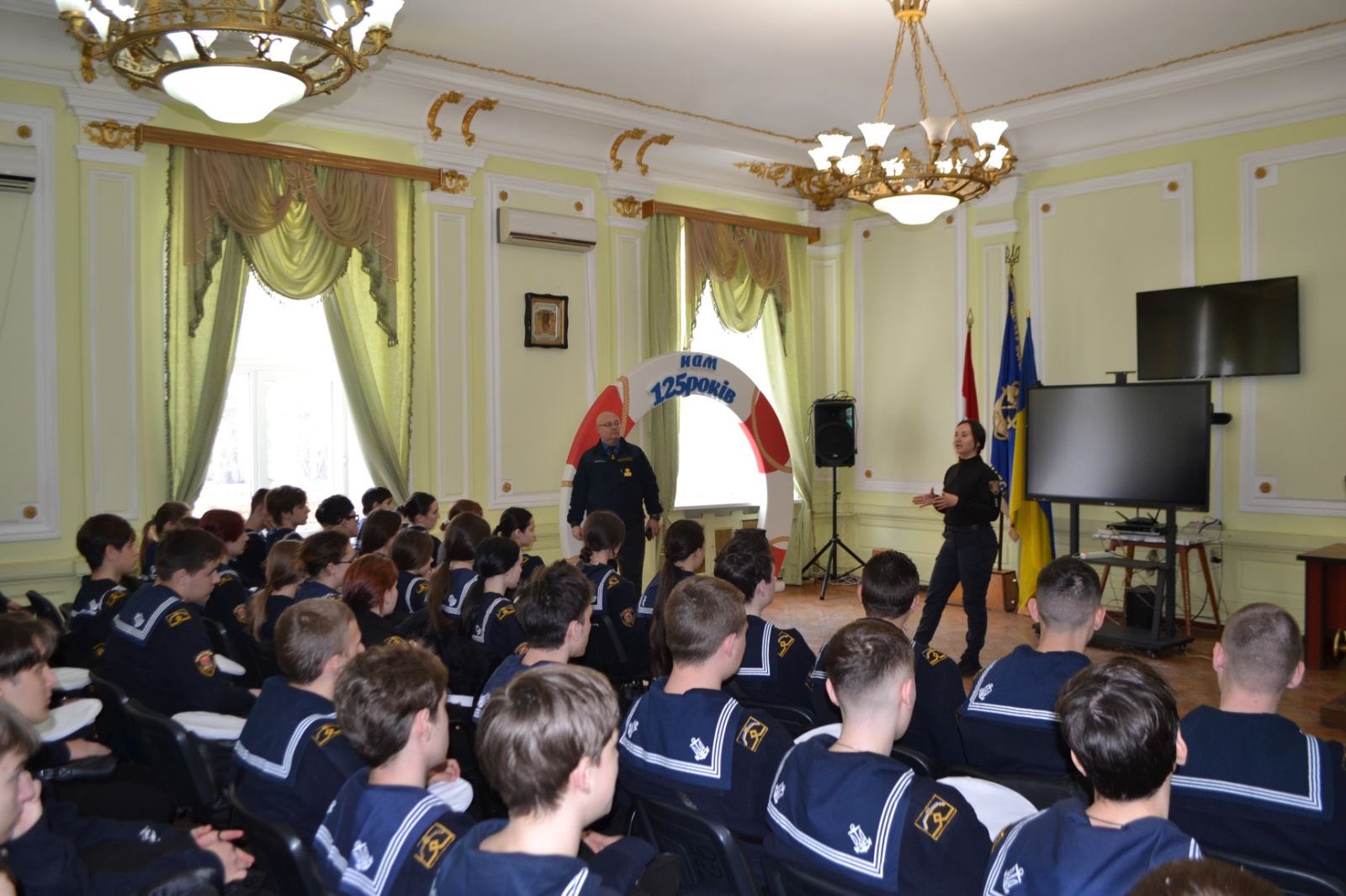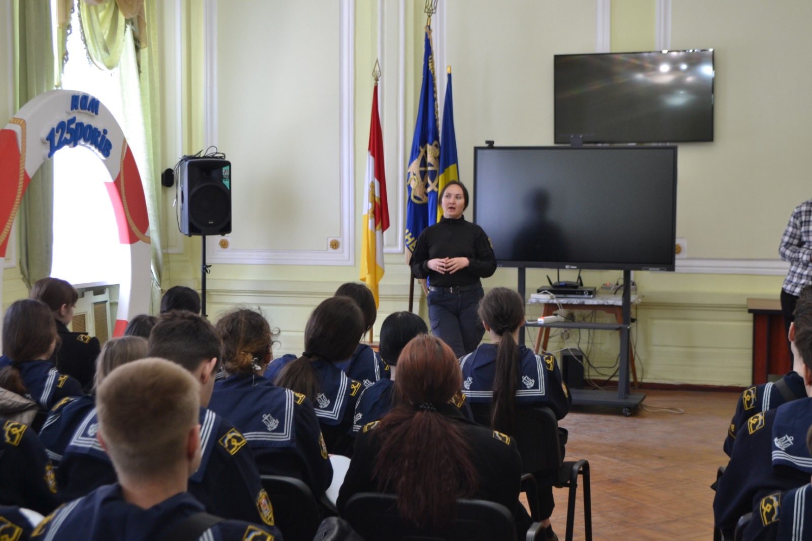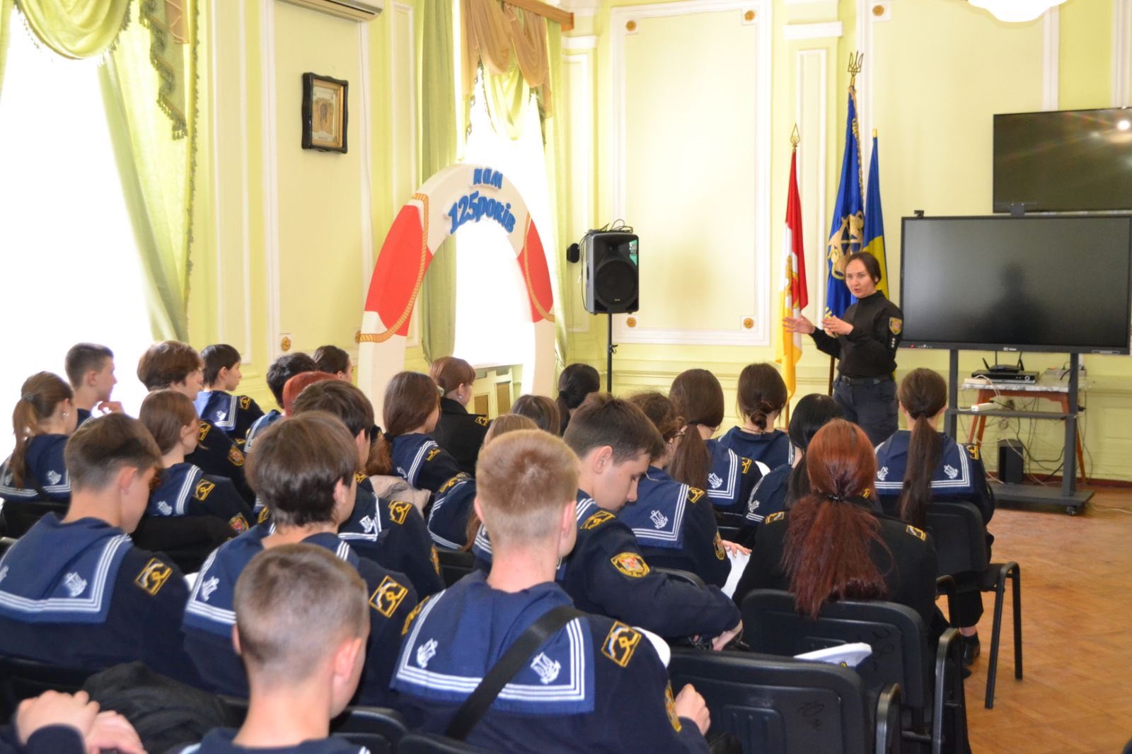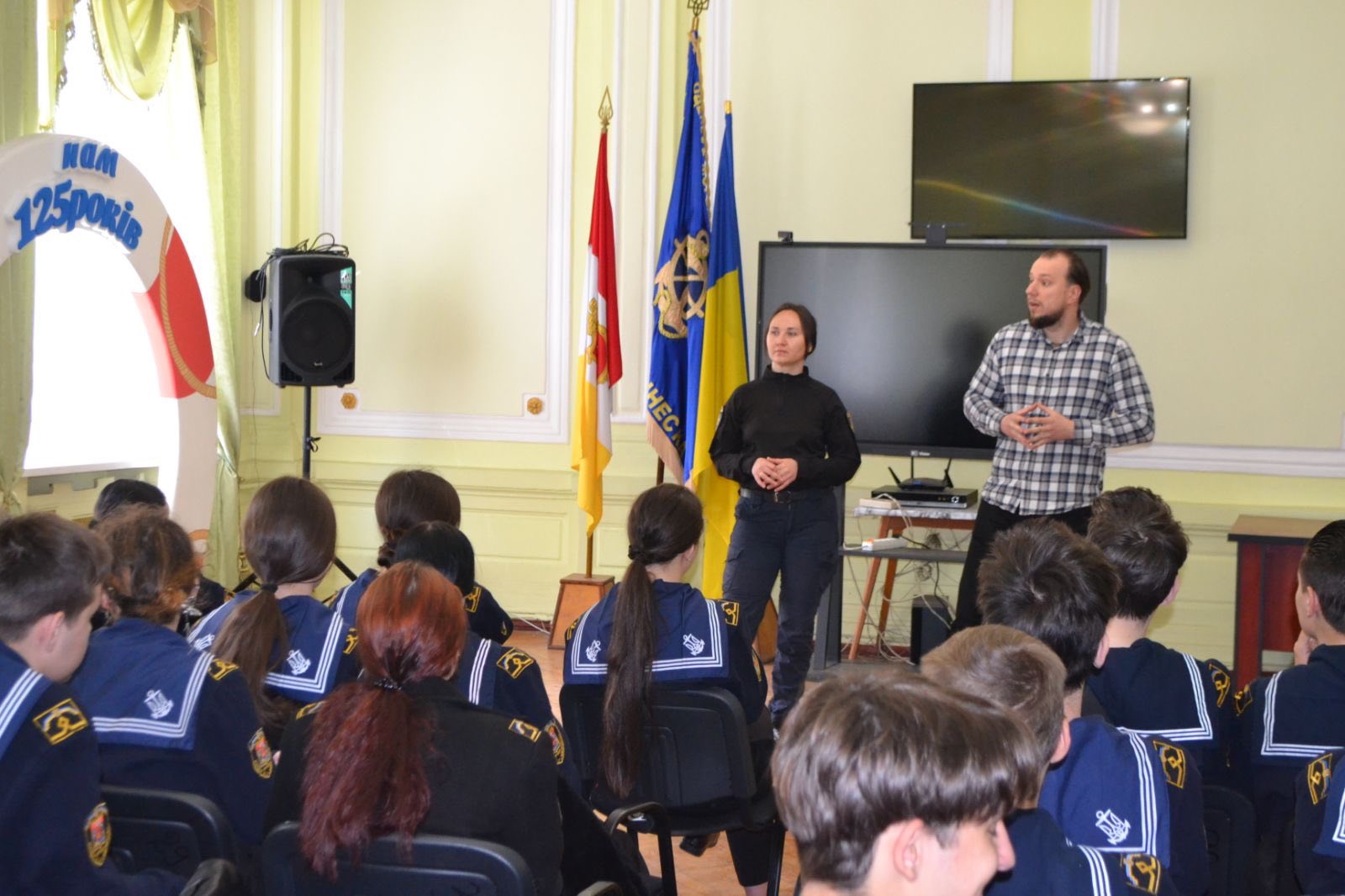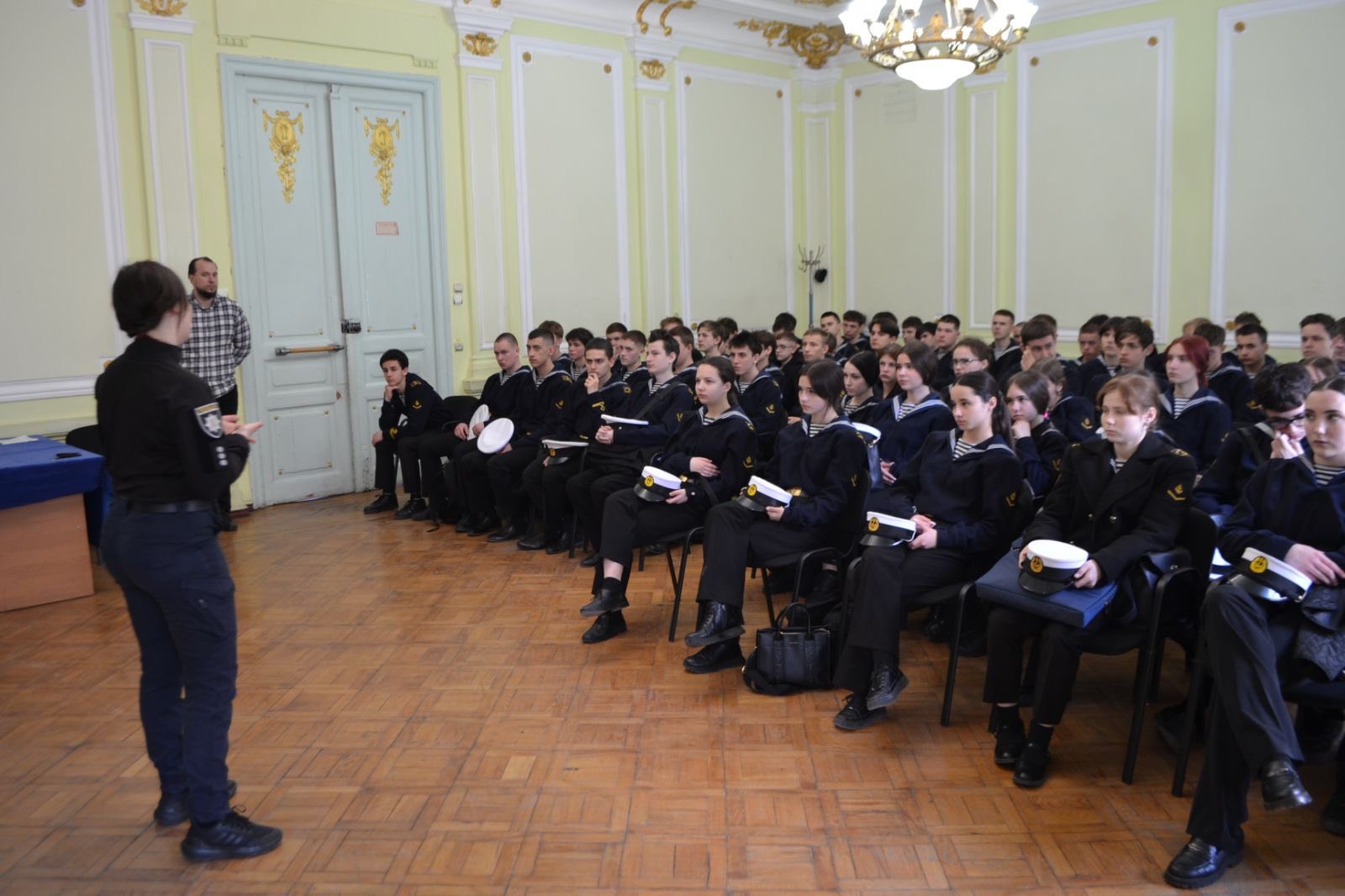 До Морехідного Фахового коледжу ім. О. І. Маринеска НУОМА з профілактичної зустріччю завітали інспектор сектору ювенальної привенції ВП ОРУП 1 ГУНП в Одеській області старший лейтенант поліції Юлія Лифенко та старший дізнавач ВП2 ОРУП1 ГУНП в Одеській області, старший лейтенант Станіслав Хмельовський.