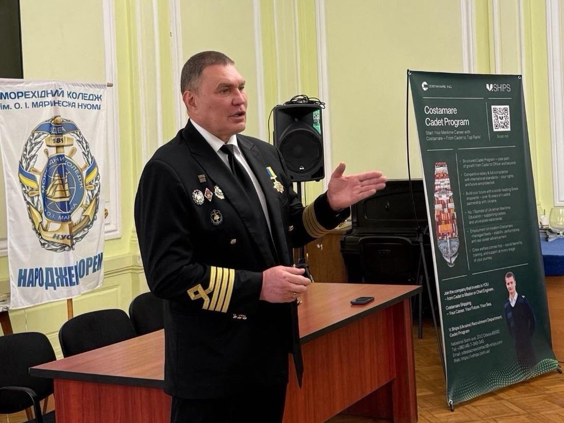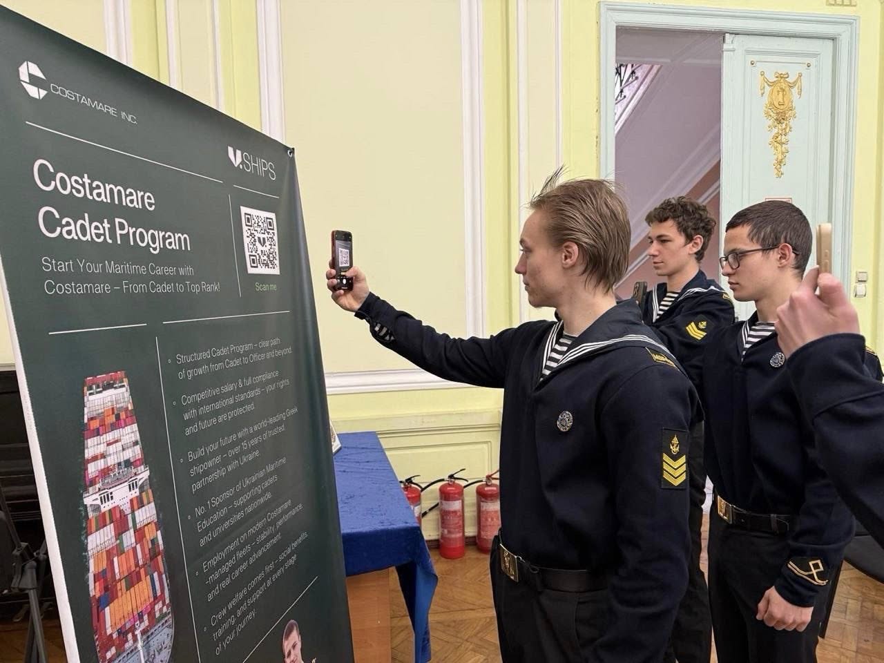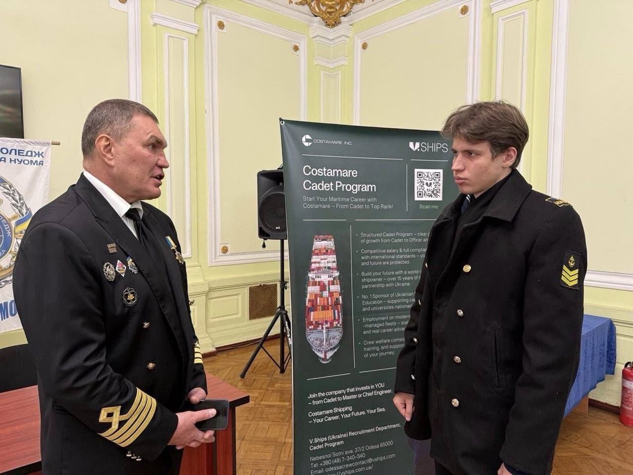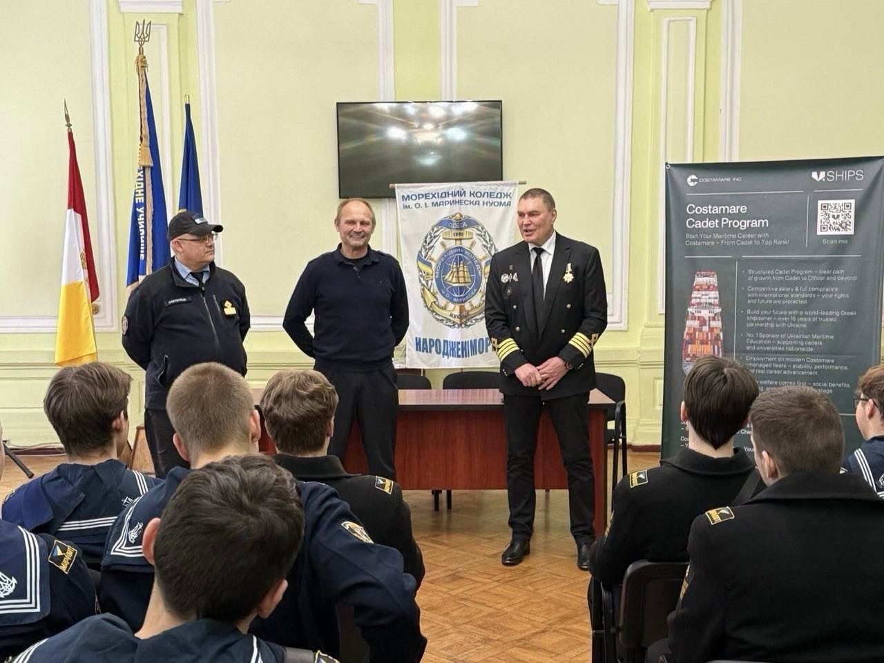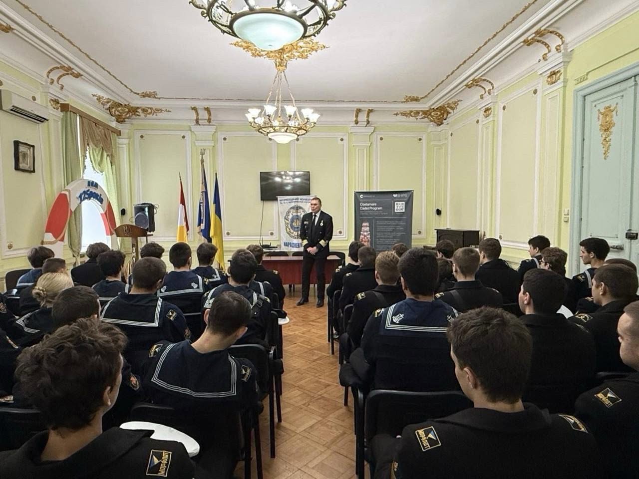 Під час заходу Ігор Вікторович ознайомив курсантів із діяльністю компанії V.Ships Ukraine та умовами кадетської програми Costamare Cadet Program. Він розповів про вимоги до кандидатів, можливості проходження практики, подальше працевлаштування.