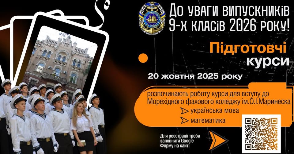 Морехідний фаховий коледж ім О. І. Маринеска НУОМА запрошує вас на підготовчі курси!